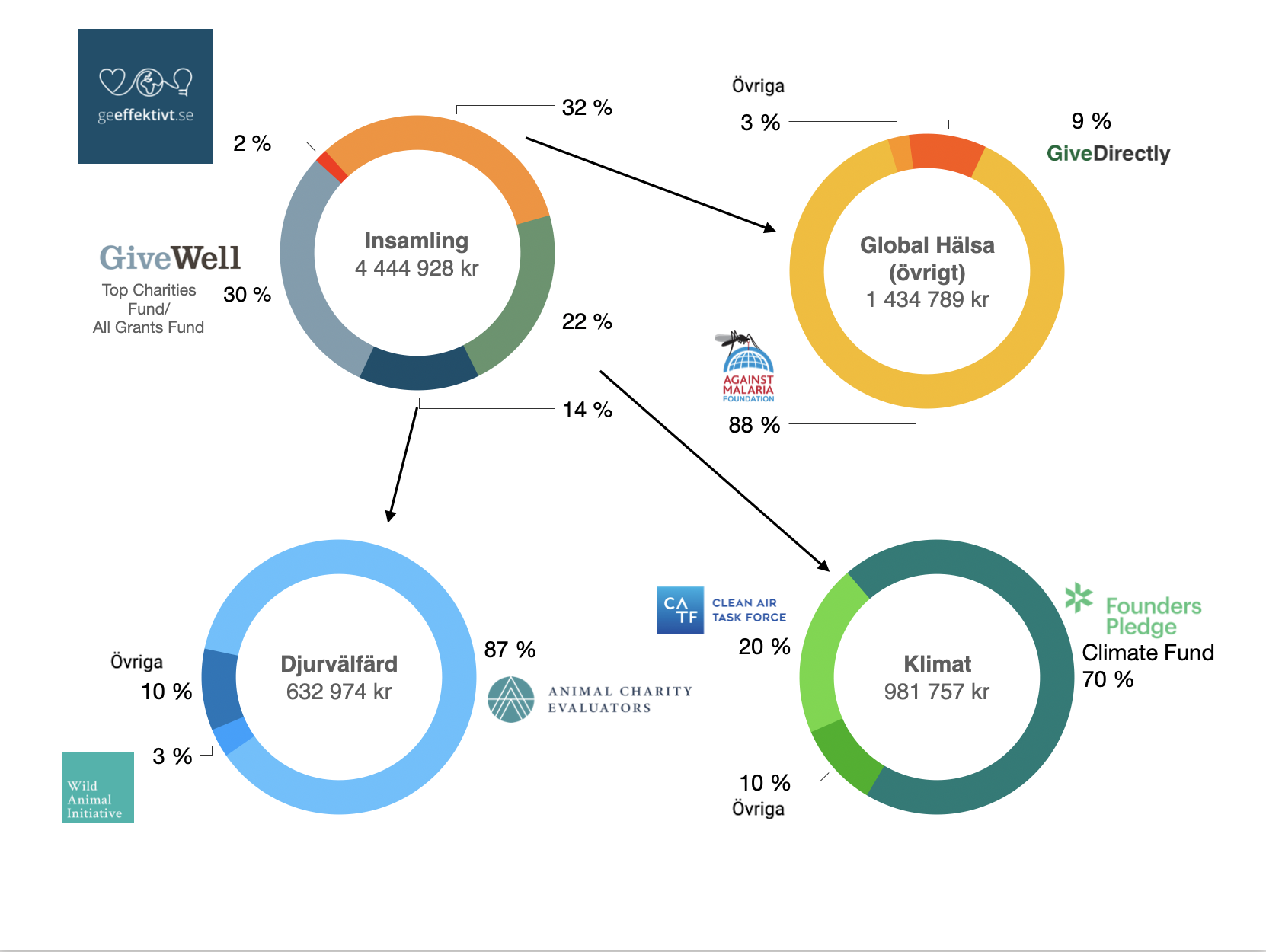Ge Effektivt har fortsatt fått finansiering från externa filantroper under 2023 och framåt, så att vi kan fortsätta skicka vidare 100% av donationerna till organisationerna vi stöttar.