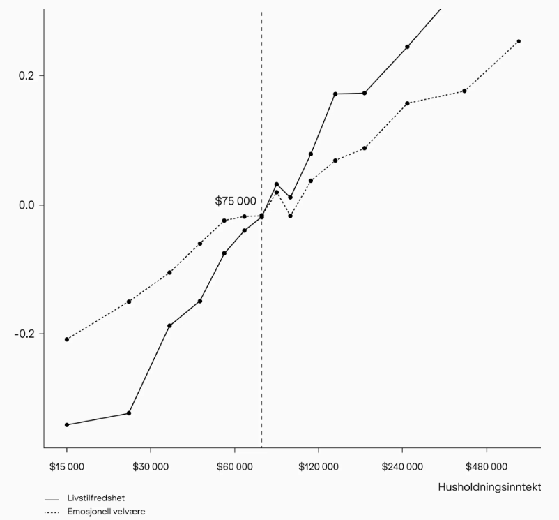 OBS! Det här är en översättning av artikeln Kan penger kjøpe lykke? från GiEffektivt.no, därför är vissa grafer och räkneexempel på norska.